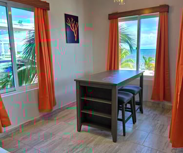 Experience ultimate comfort in our deluxe room, a spacious and private retreat designed for your relaxation. This expansive suite features a luxurious king-size bed, a fully equipped kitchen for your convenience, and a separate, stylishly furnished living room perfect for unwinding. Step out onto your private balcony to enjoy breathtaking, panoramic views of the beach and the ocean.
